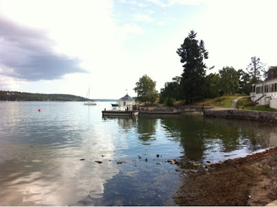 Som tillbehör serverade jag i lördags tunt strimlad fänkål som fått ligga i kallt vatten nån timme för att verkligen krispa till sig, blandat med fint strimlad salladslök, hackad dill och ett gäng räkor, på med lite svartpeppar, pressa på lite citron och så rör i en skvätt olivolja så att det blir lite glans på det hela. Detta lades alltså i en hög och dekorerades med fänkålsblomma. Går såklart med dillkvist om man föredrar det.